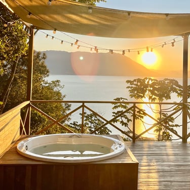 Relaxe na jacuzzi enquanto aprecia a linda paisagem e a brisa suave do ribeirão.